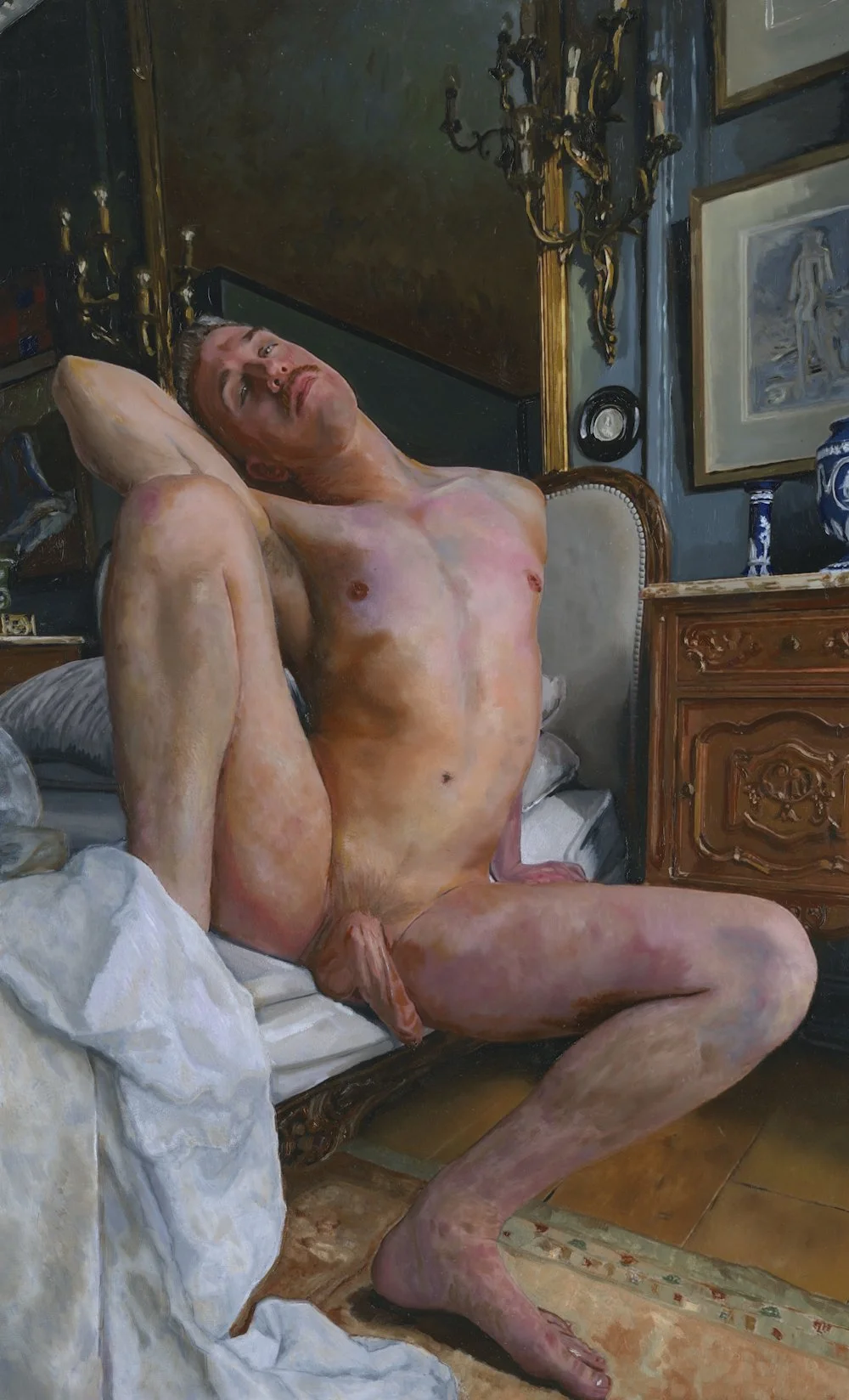 The Gallery Assistant (tourist Looking at the Male Nude), 2025. Oil on paper 26cm x 41cm (SOLD Private Collection)